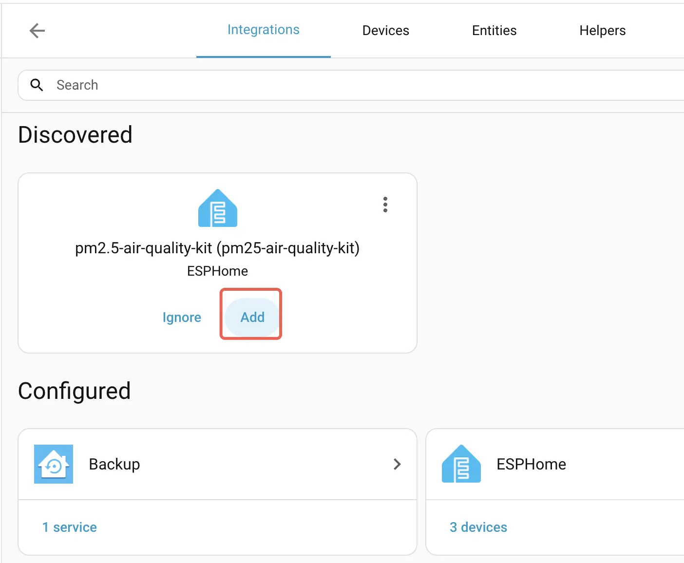 Upon successfully flash the firmware, the device should reset automatically and connected to the Wi-Fi configured in the Home Assistant. The Home Assistant will discover the device. You can click Check it out