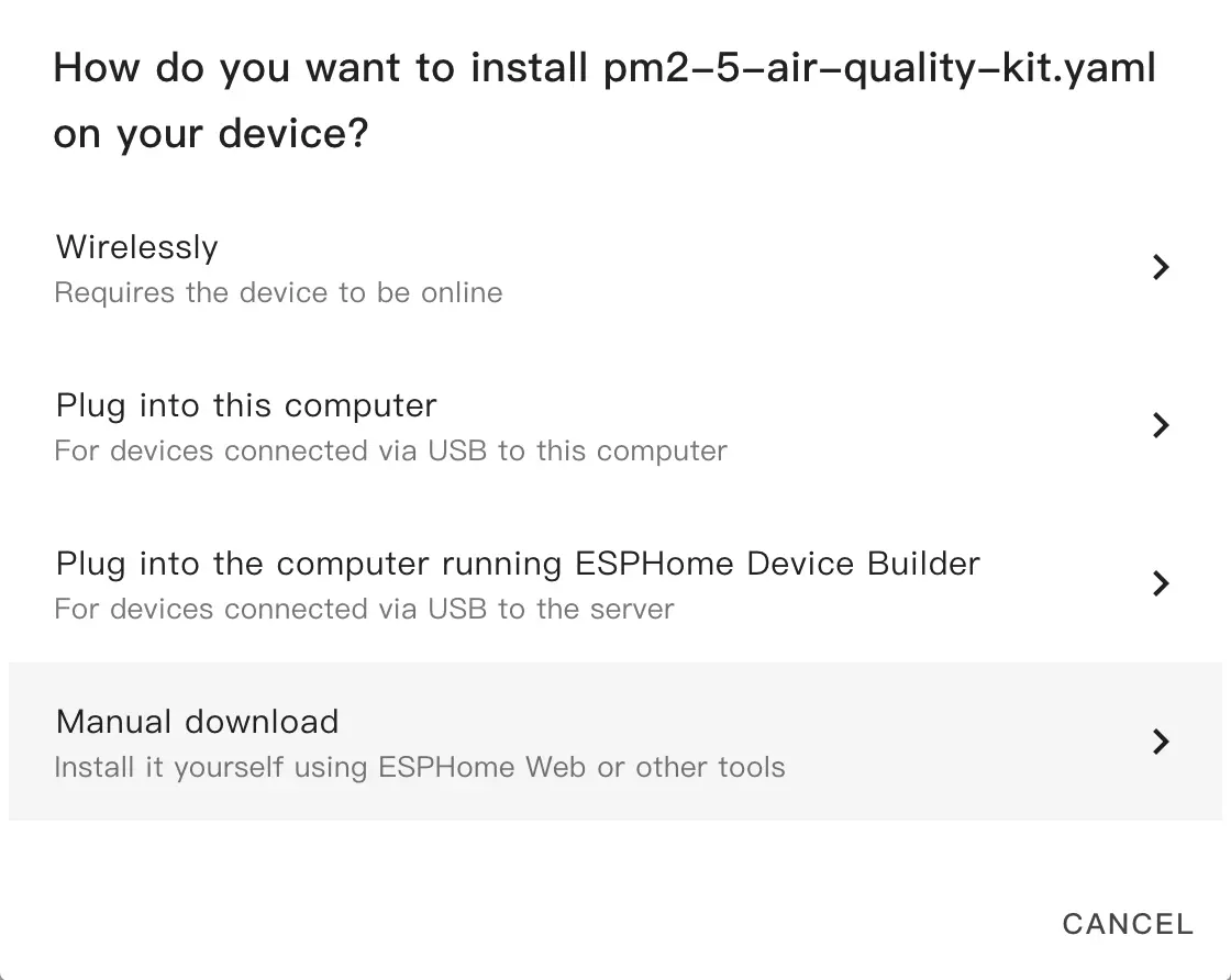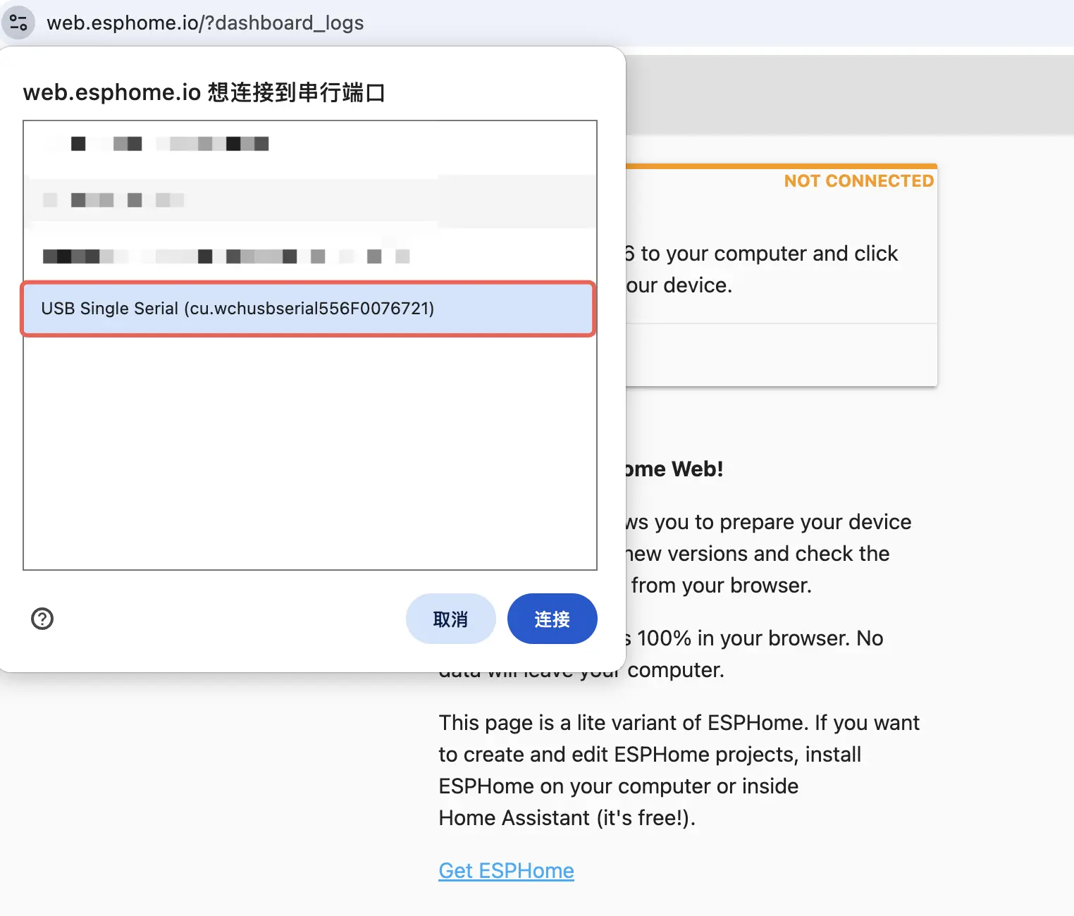 Plug the device with your PC. Open ESPHome Web, and click CONNECT