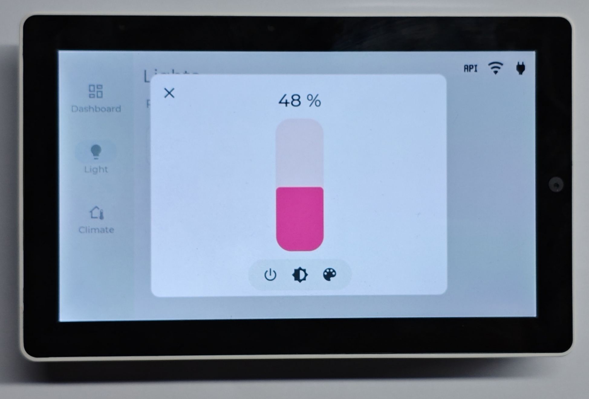 You will find these UI designs and interactions are similar with Home Assistant dashboard. Except to achieve this would cost more time on a embedded device using LVGL.