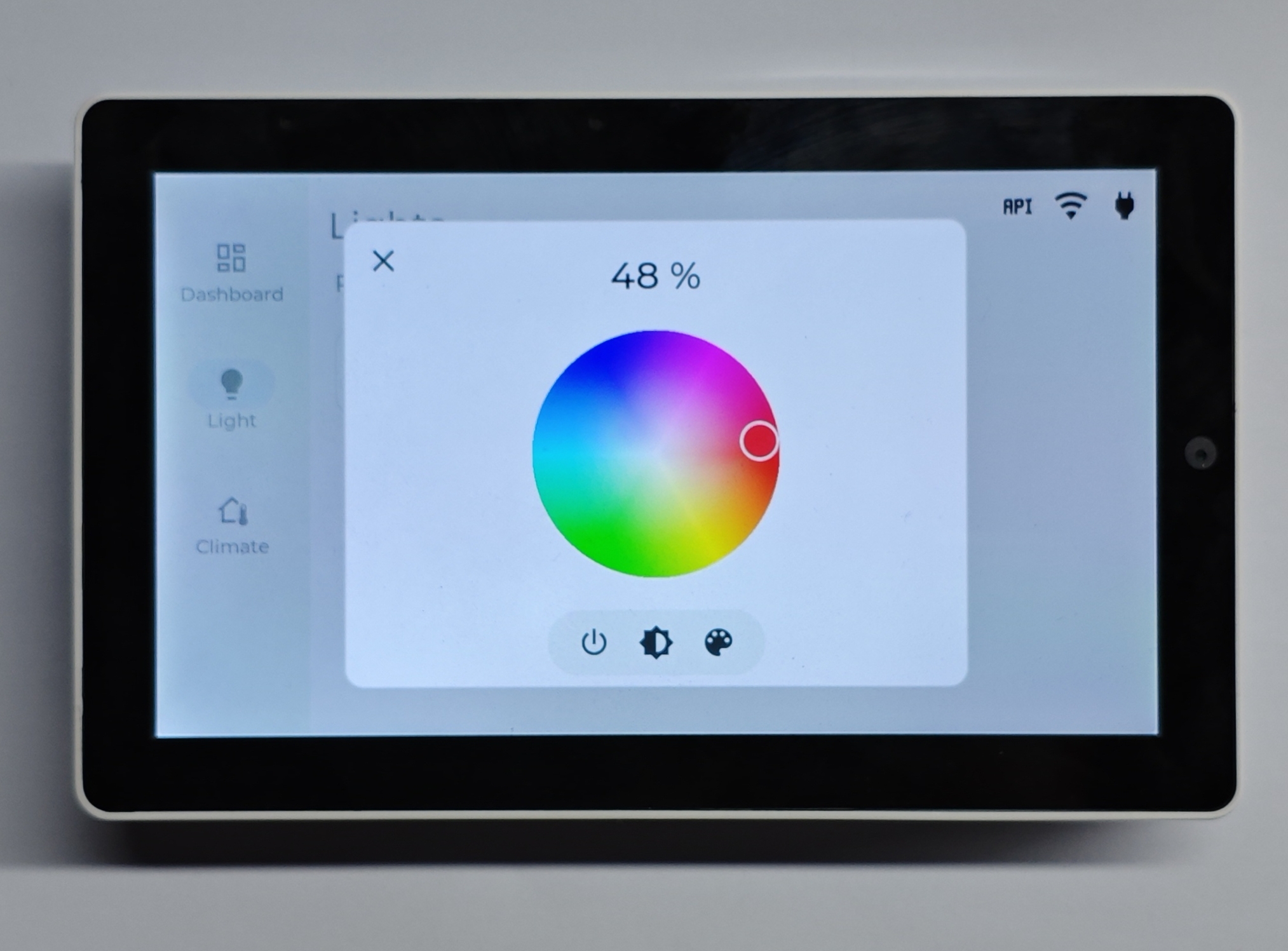 In LVGL (These definitions can be found in tab5-lvgl.yaml), we draw some widgets like Icon Button, Slider and a customized Color Palette. Before you begin, make sure your light entity has been integrated into Home Assistant (make sure you can control the light within Home Assistant).