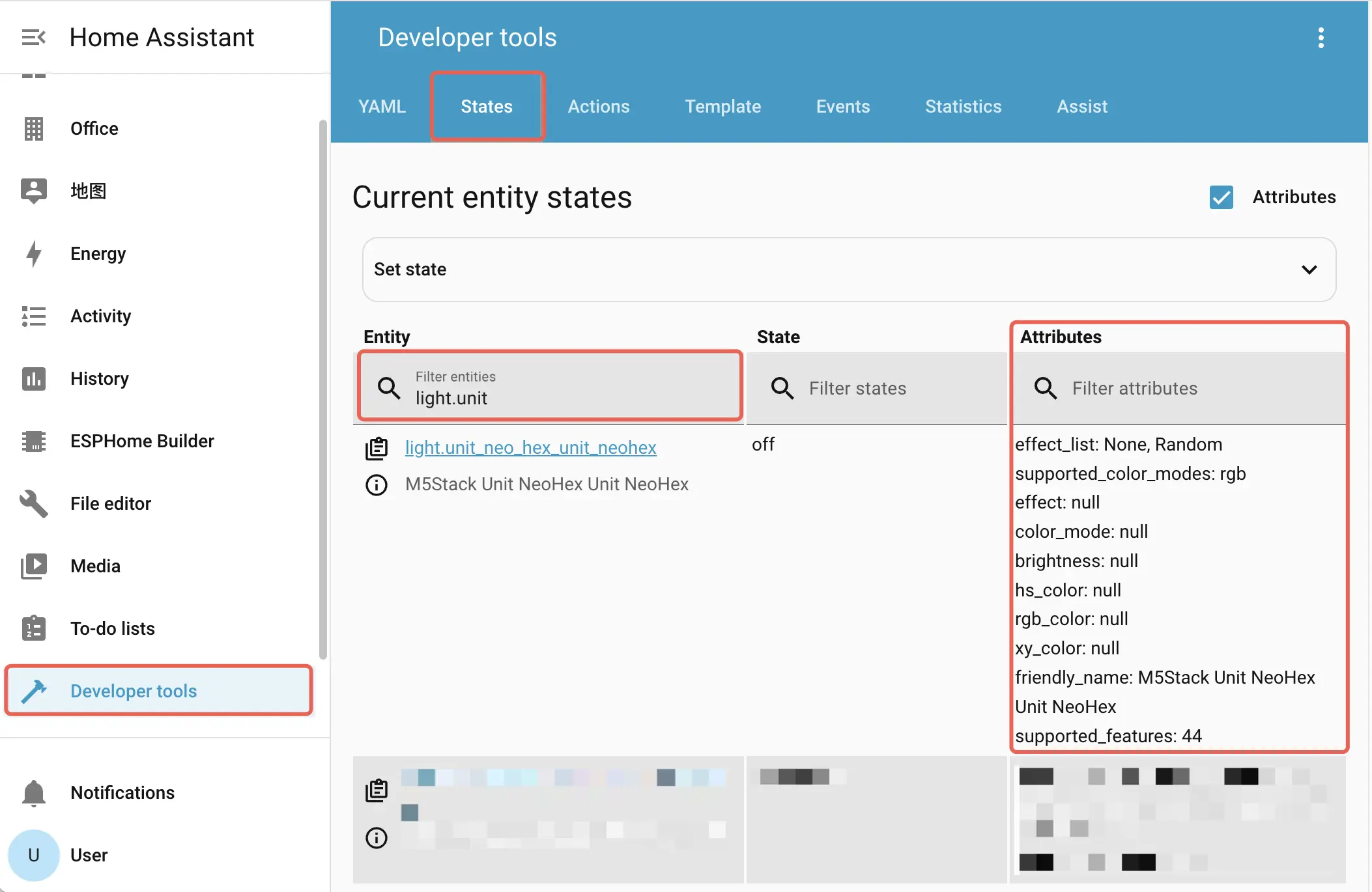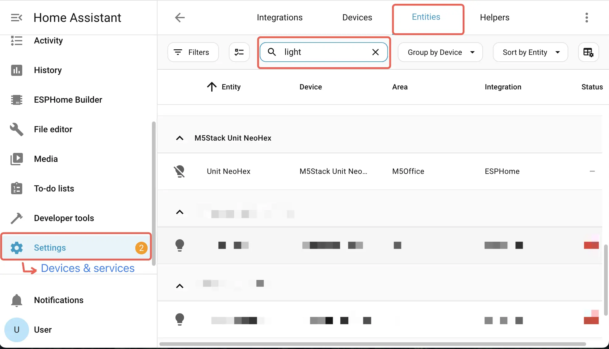 We`ll use several entities in this demo, mainly a temperature/humidity sensor (Unit ENV-Pro), a RGB light (Unit NeoHEX) and a IR Remote Climate entity.