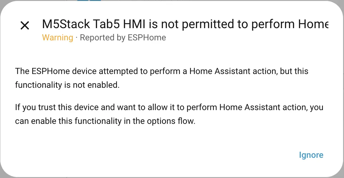 The problem suggest that Tab5 is trying to access the Home Assistant entities and modify attributes, but Home Assistant stopped the action by default.