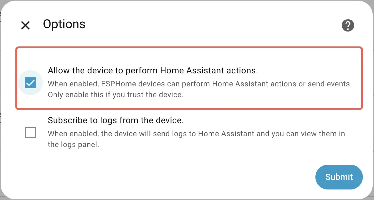 Click the cog icon on top right corner, tick Allow the device to perform Home Assistant actions