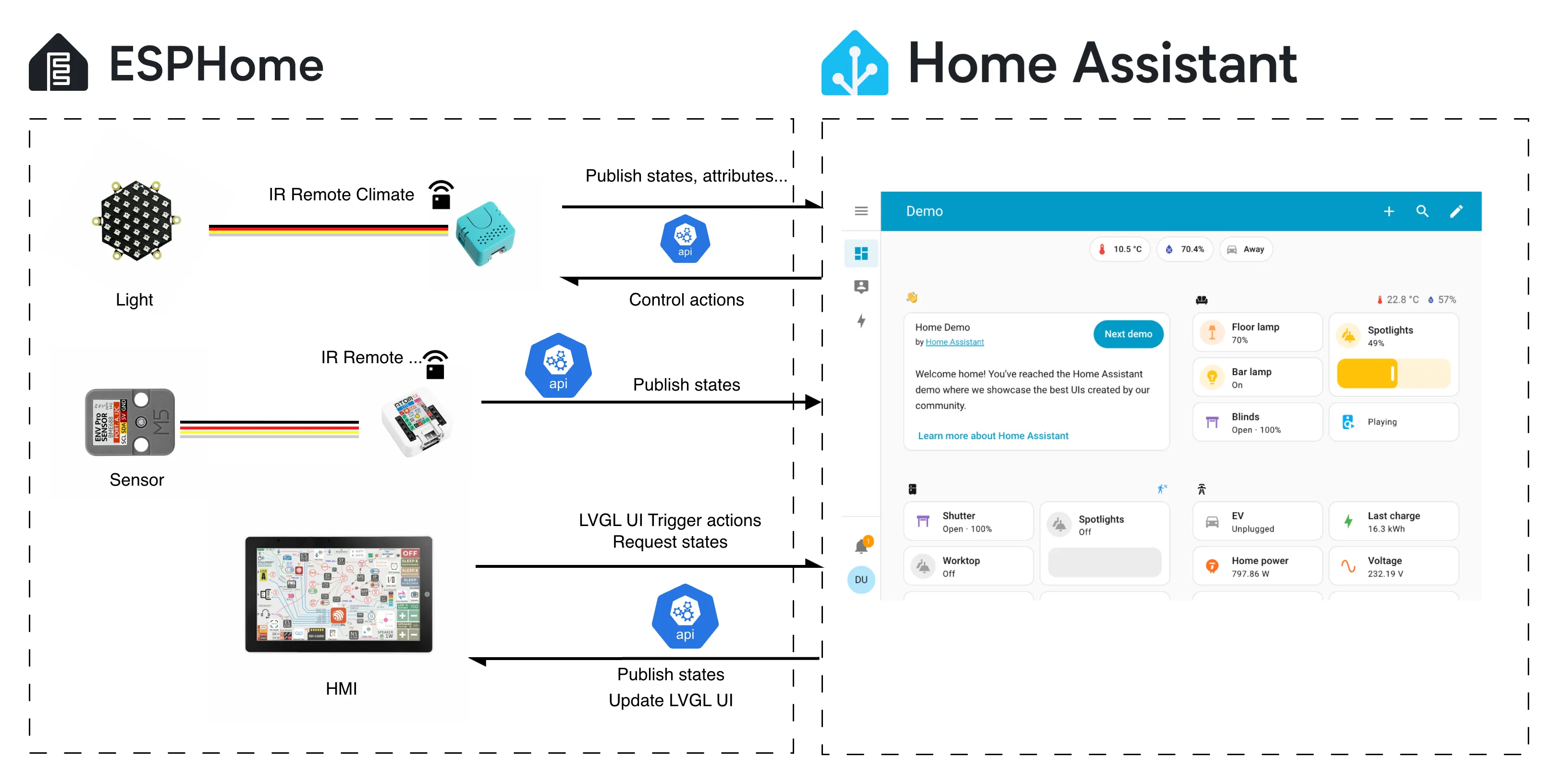 UI 设计和交互参考自 Home Assistant dashboard,在嵌入式设备上使用LVGL实现可能需要更多时间